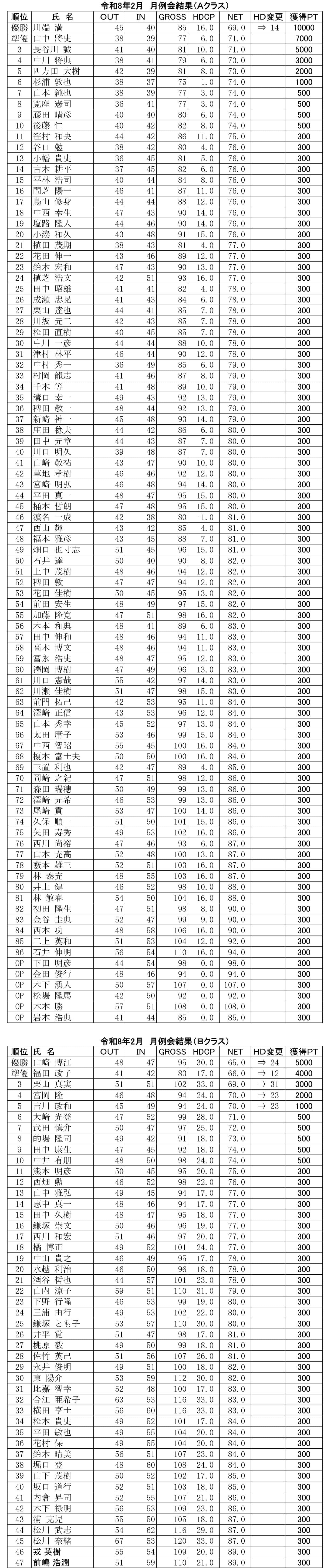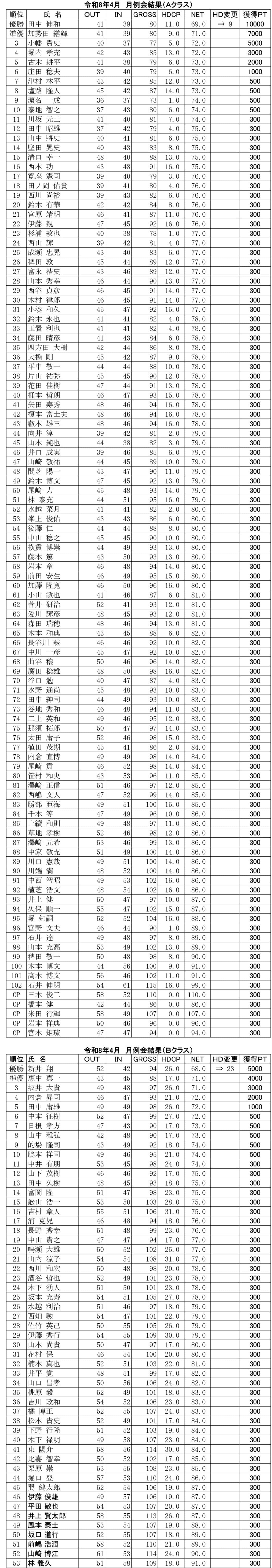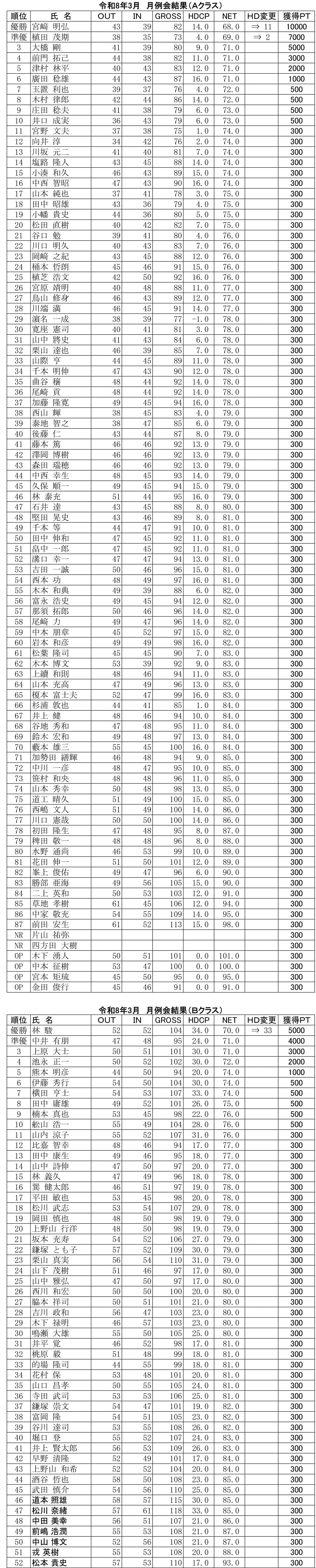 日曜 月例杯