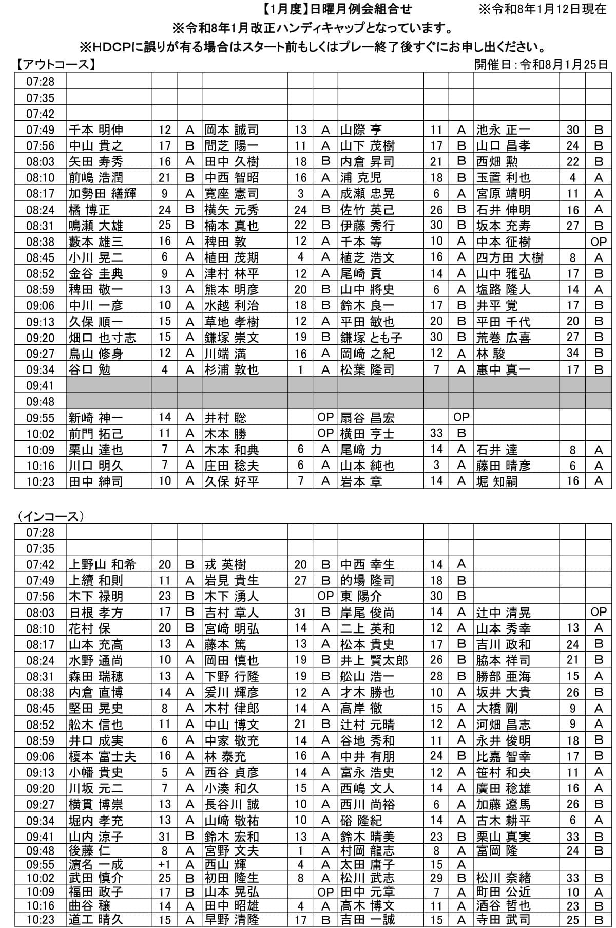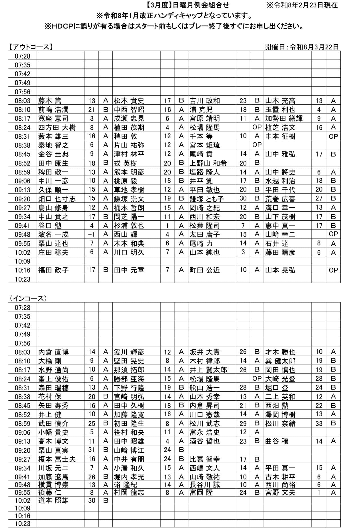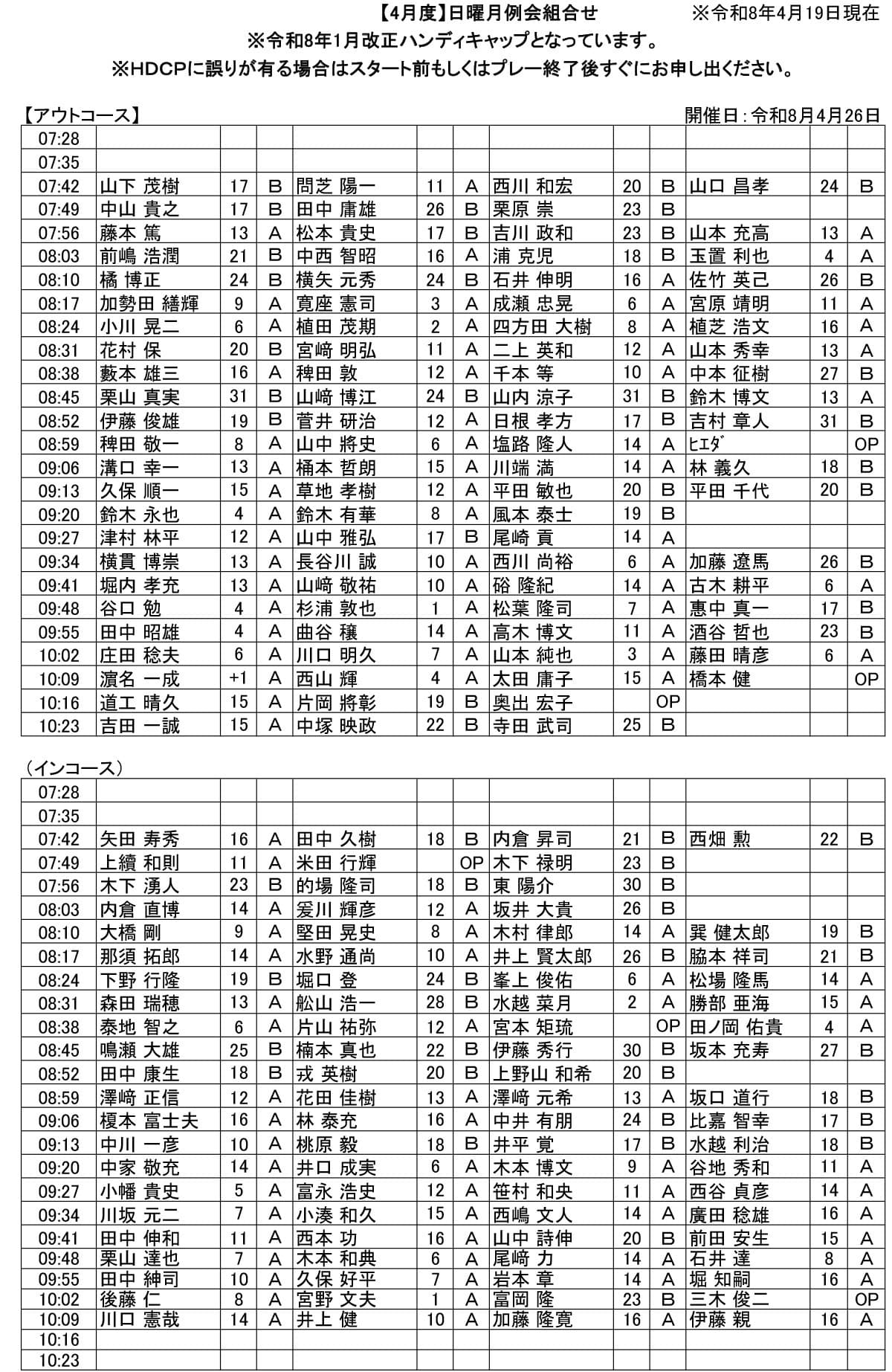 日曜 月例杯