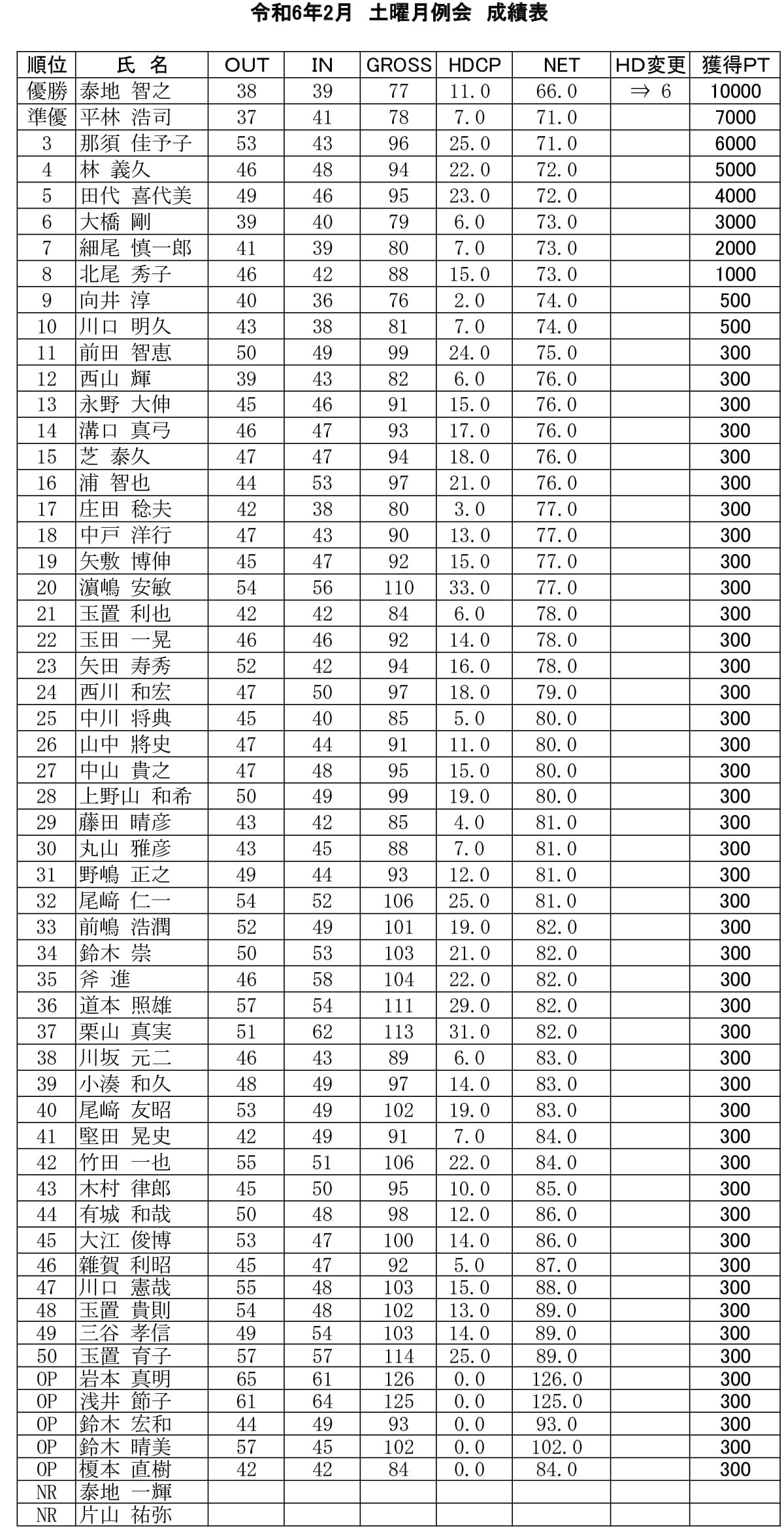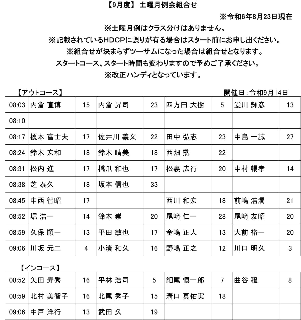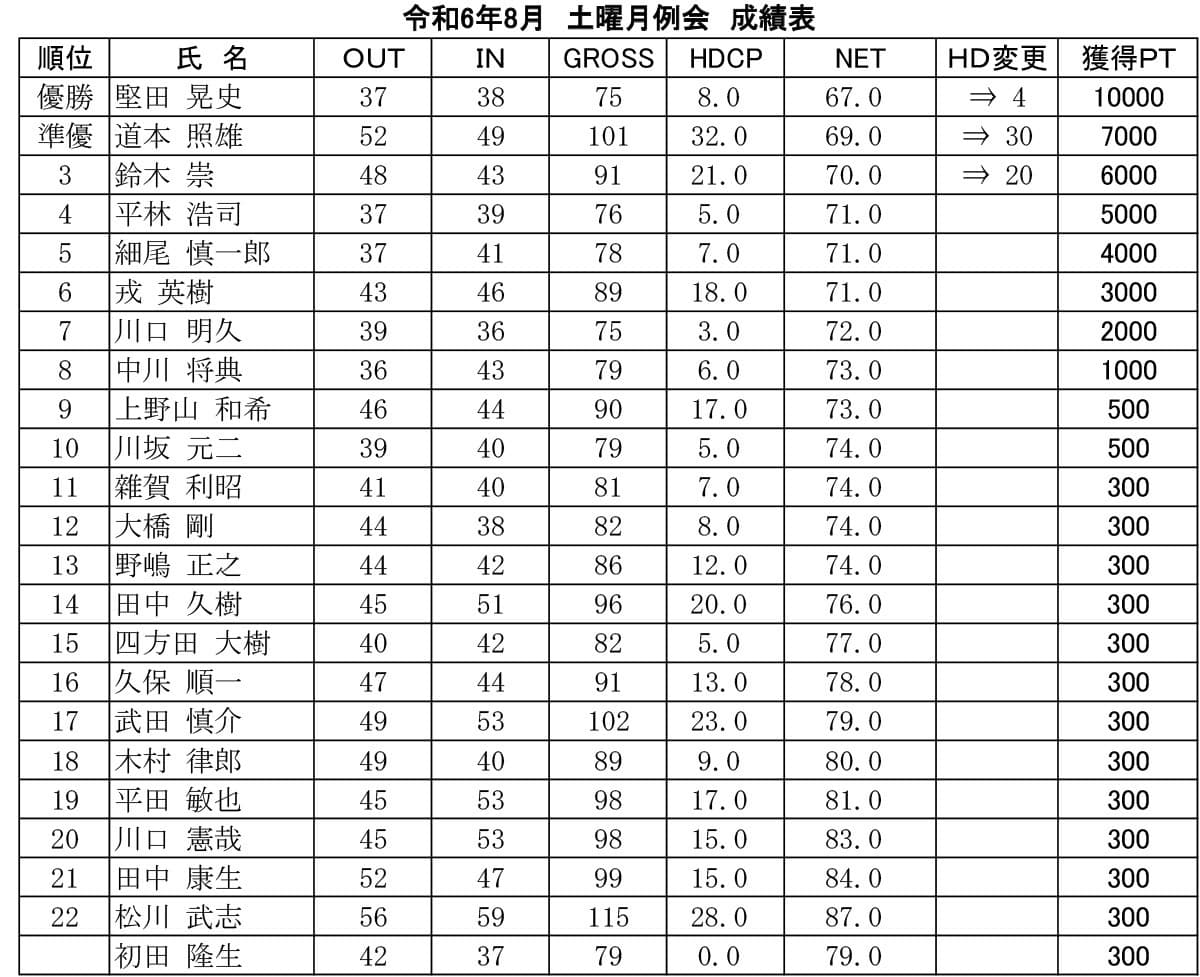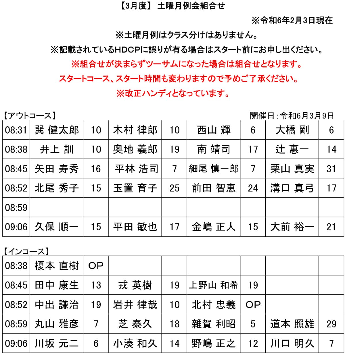土曜 月例杯