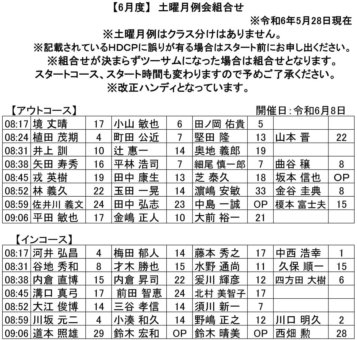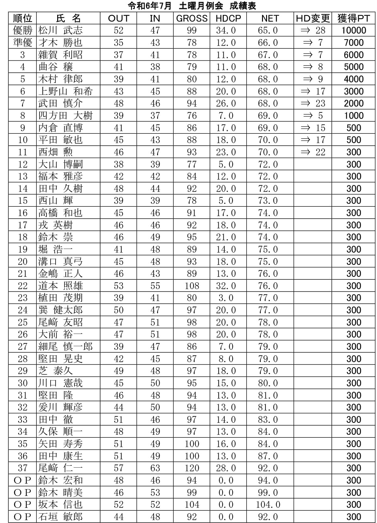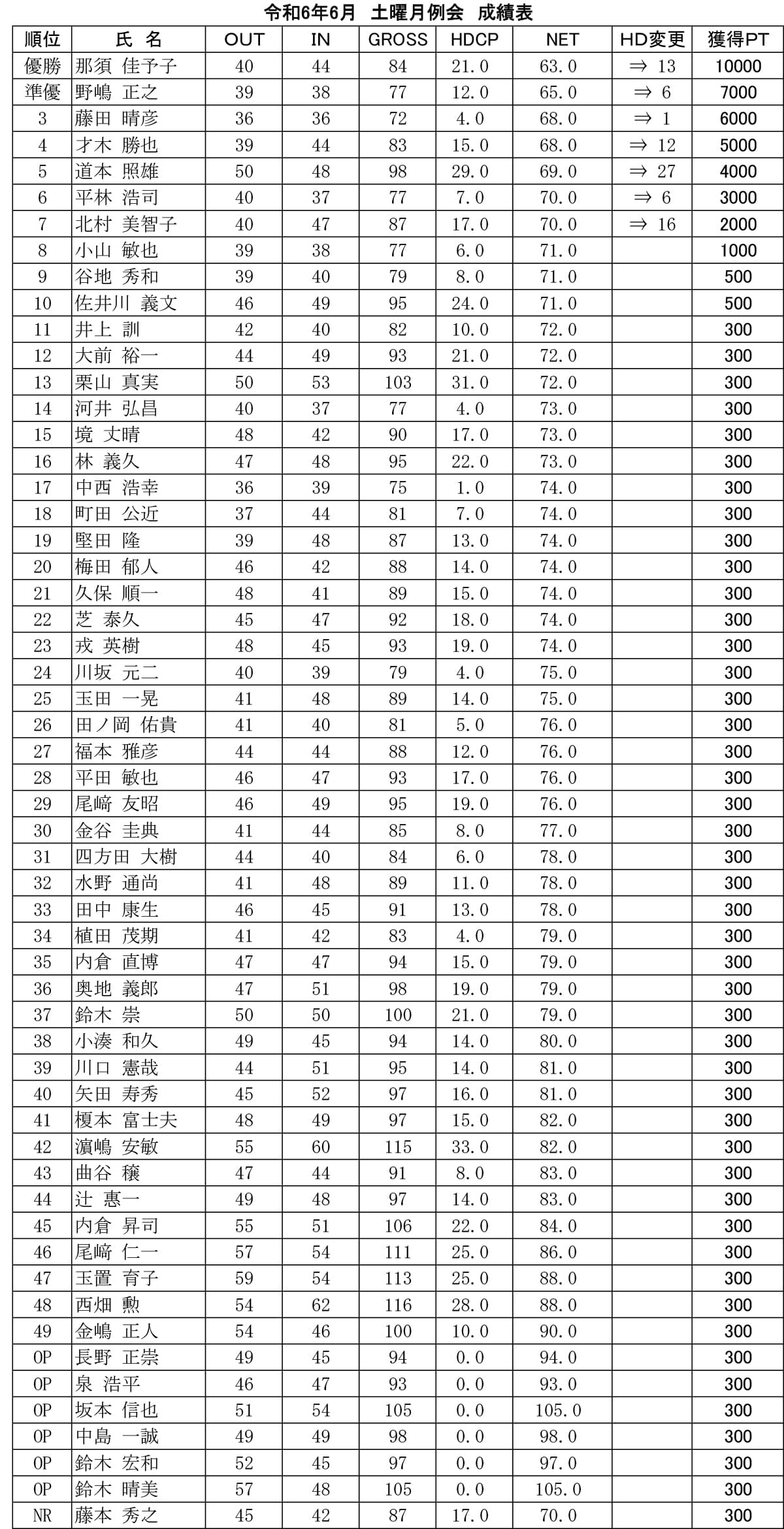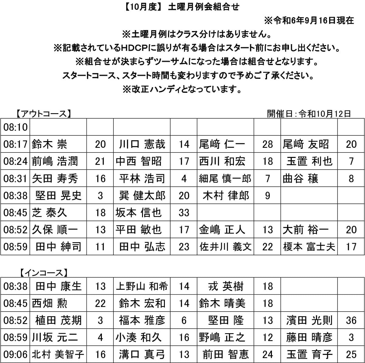 土曜 月例杯