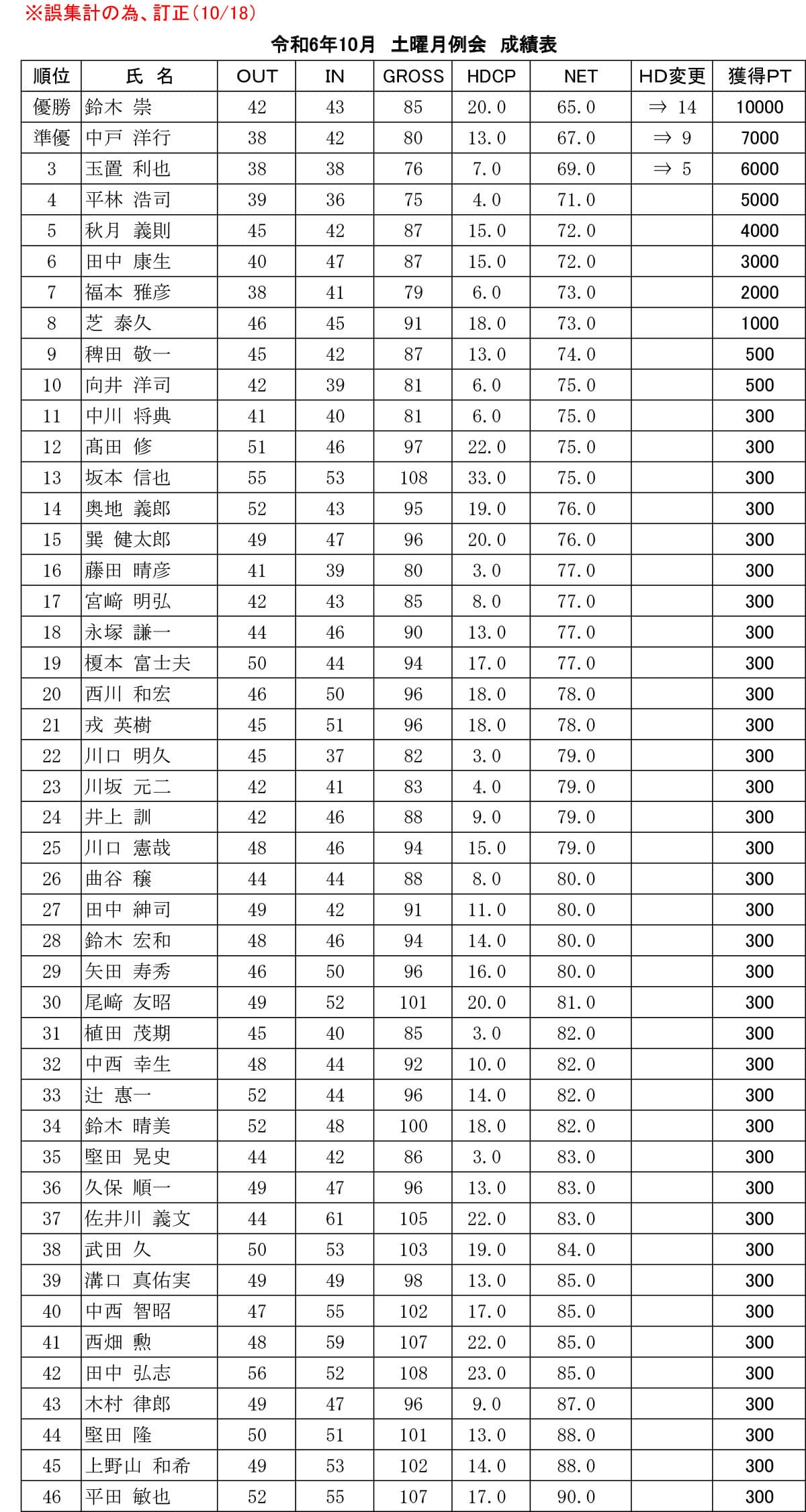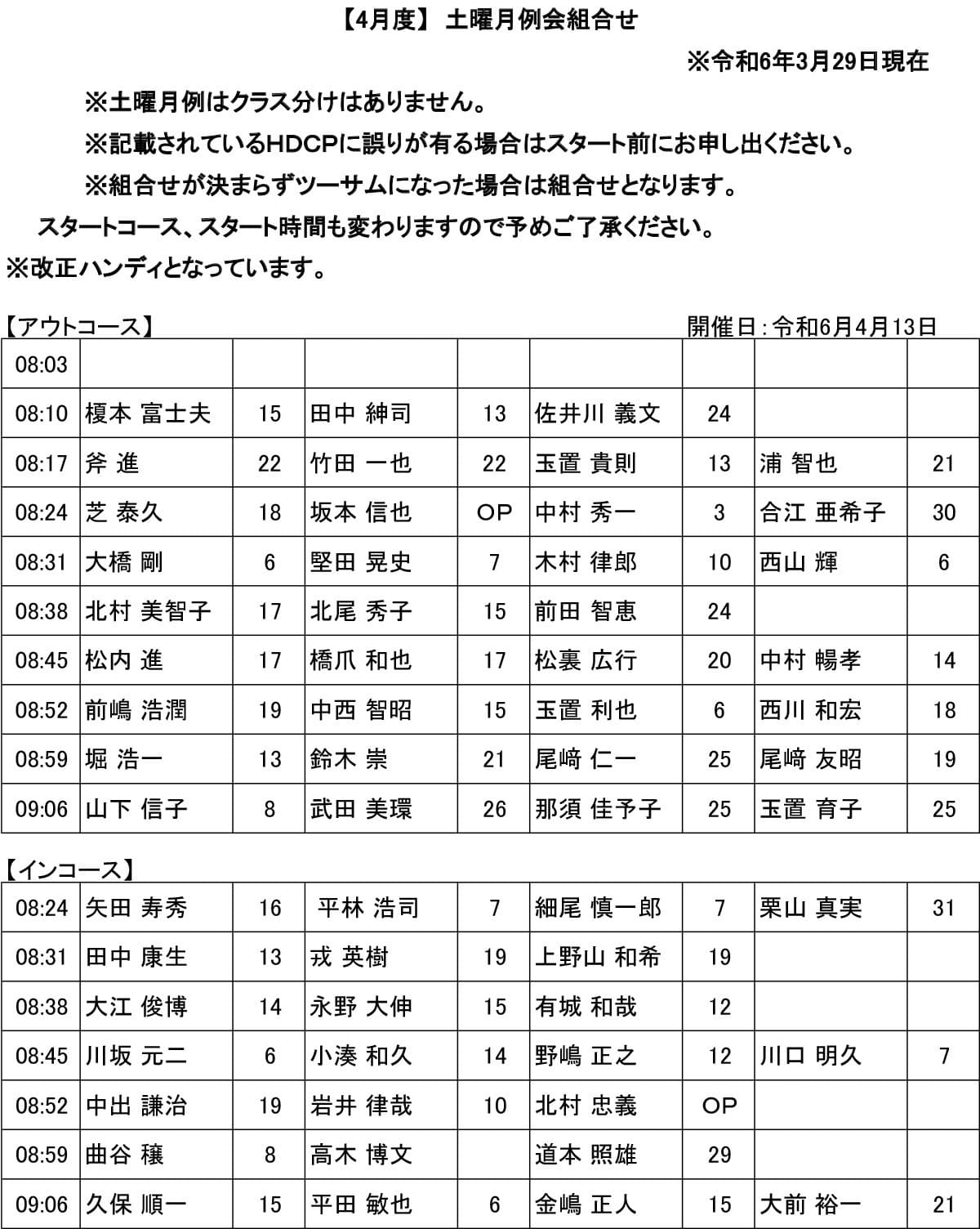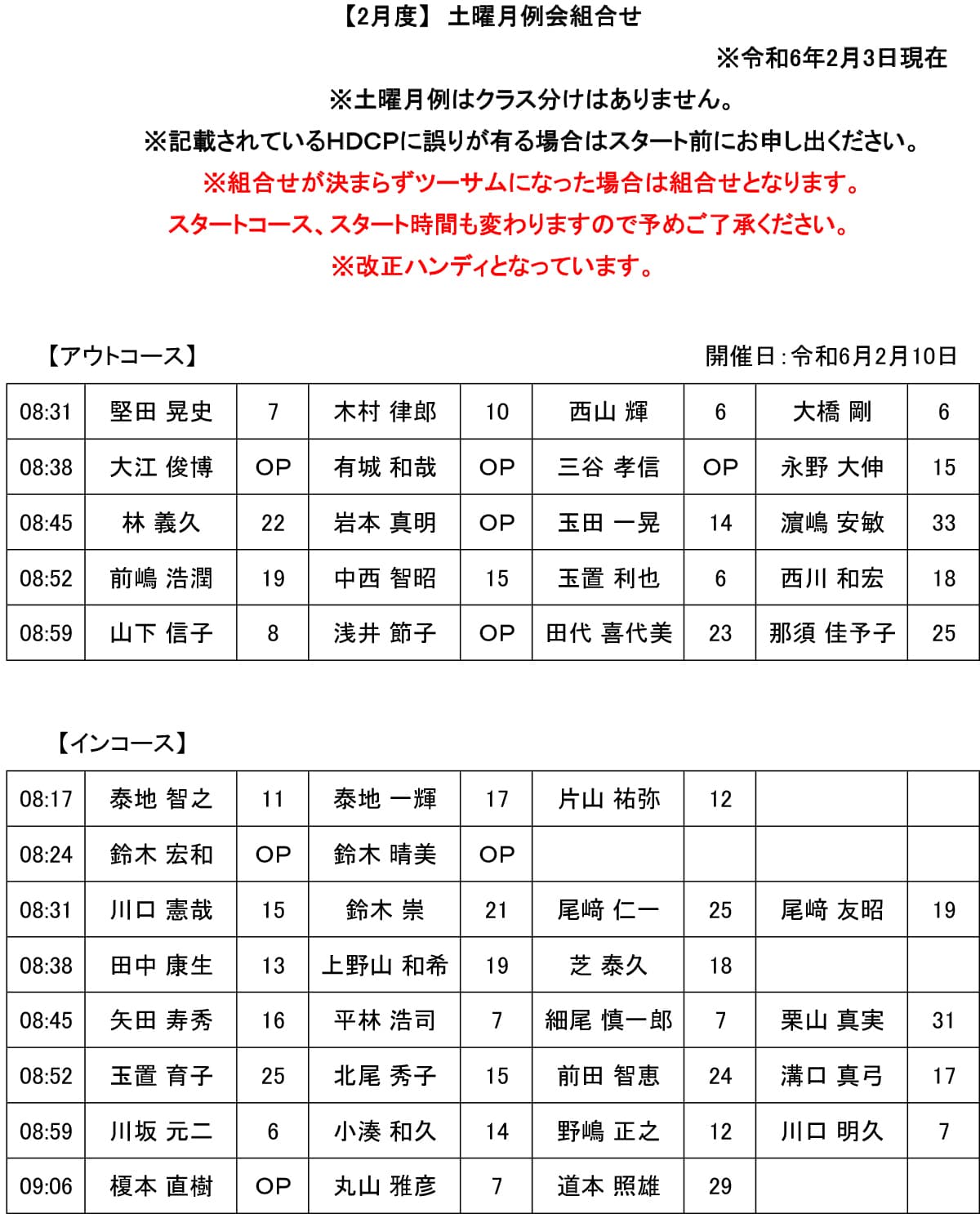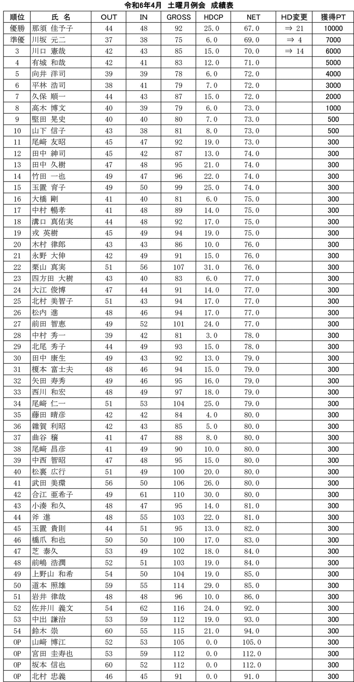 土曜 月例杯