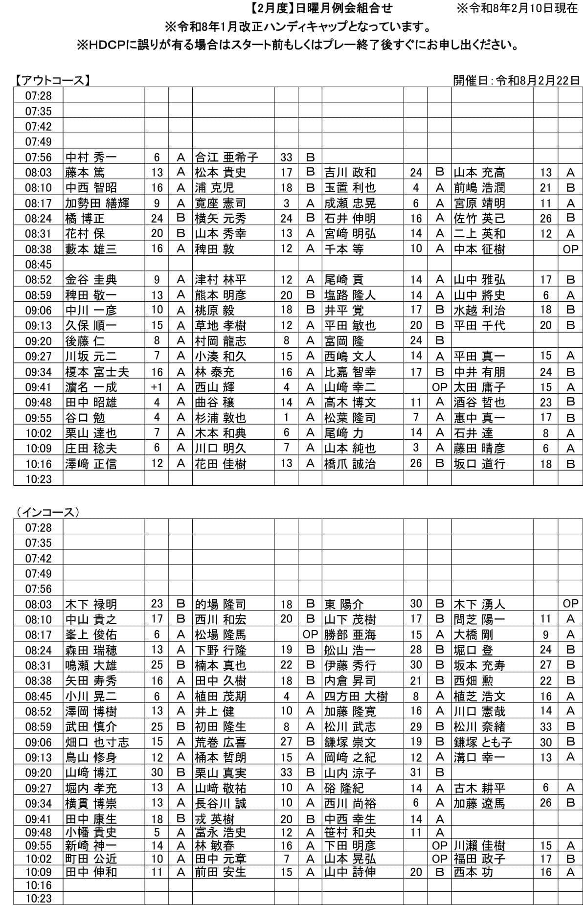 日曜 月例杯