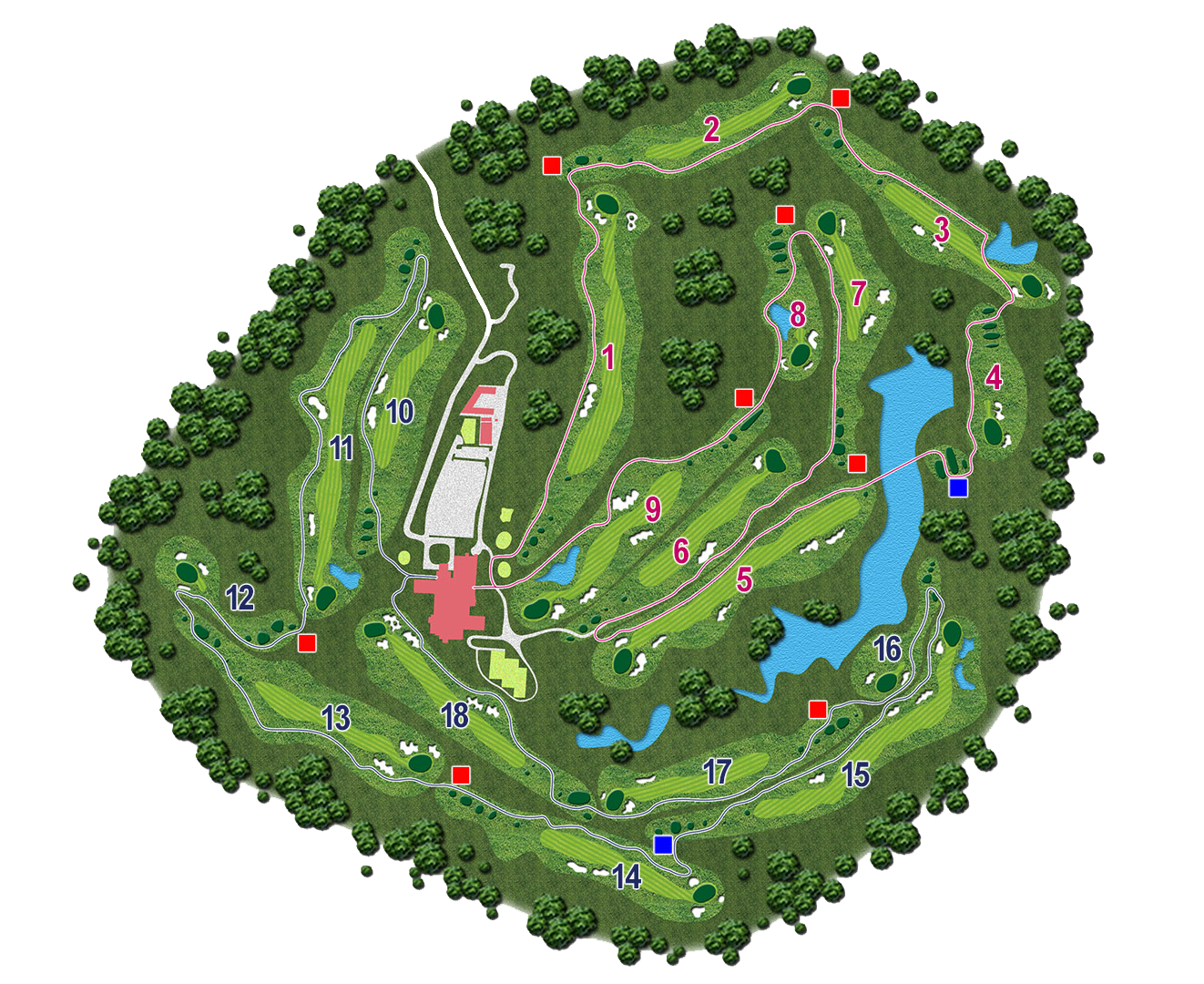 随所に美しい池を配したアメリカンタイプのレイアウトでダイナミックプレイして頂けます。